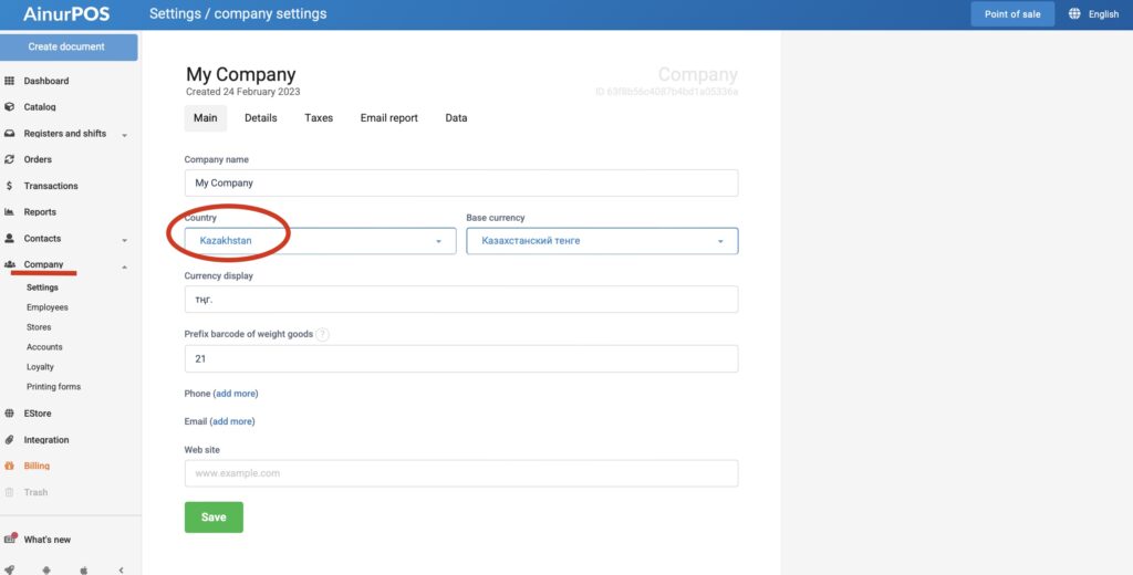 - Откройте веб-версию AinurPOS.