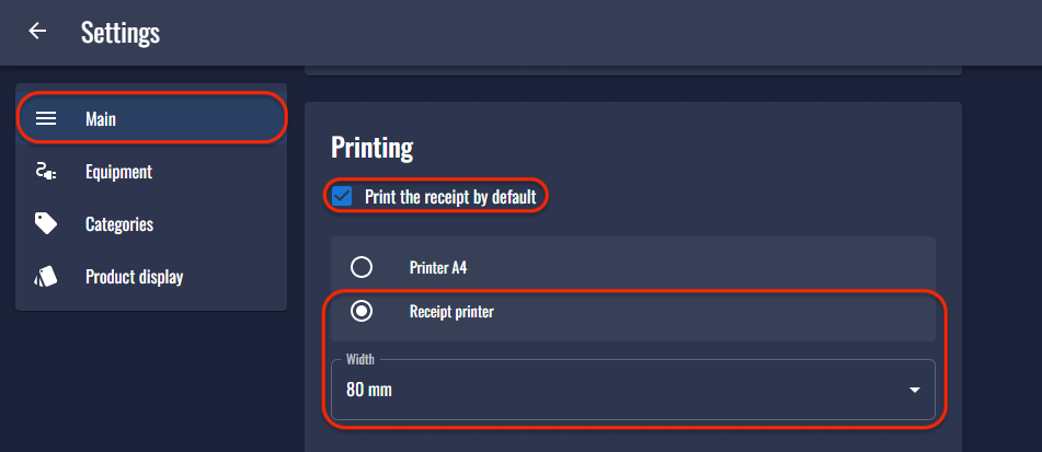 - Перейдите в раздел «Receipt printer».